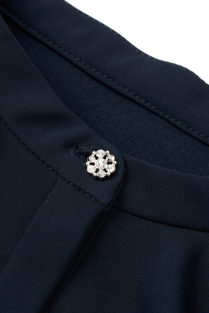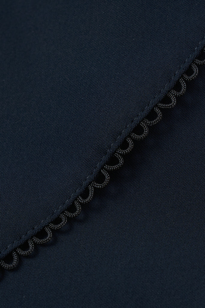 襟端にはピコレースをあしらい、さらにラインストーンのボタンが煌めきを添えています。