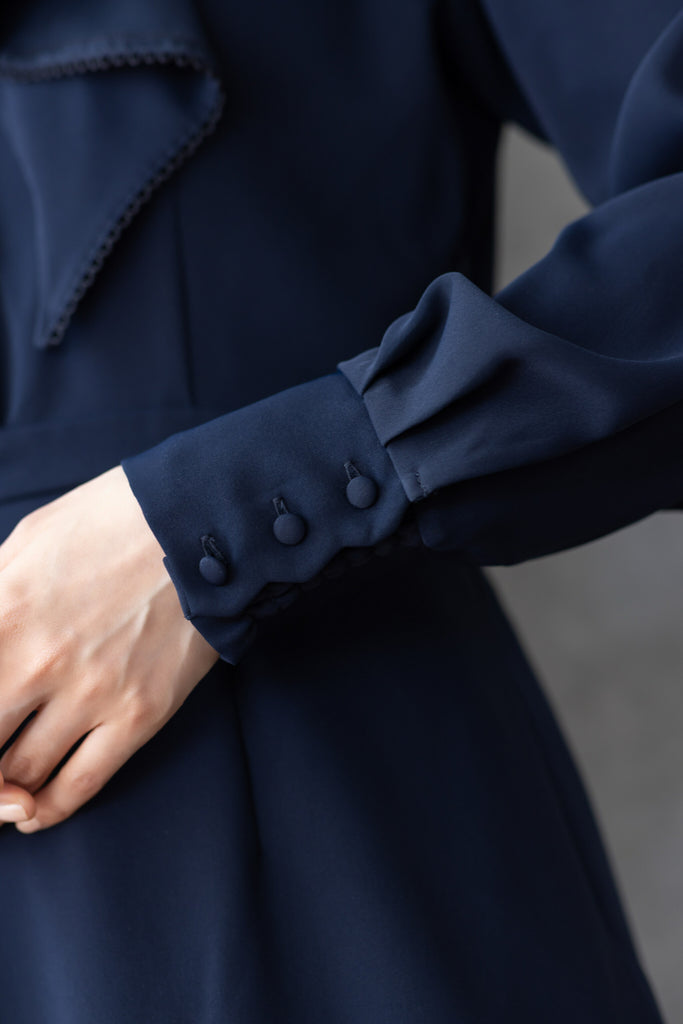 カラーは青みを押さえた落ち着いたネイビーで、機能派アイテムとは思えないほどエレガントな雰囲気。