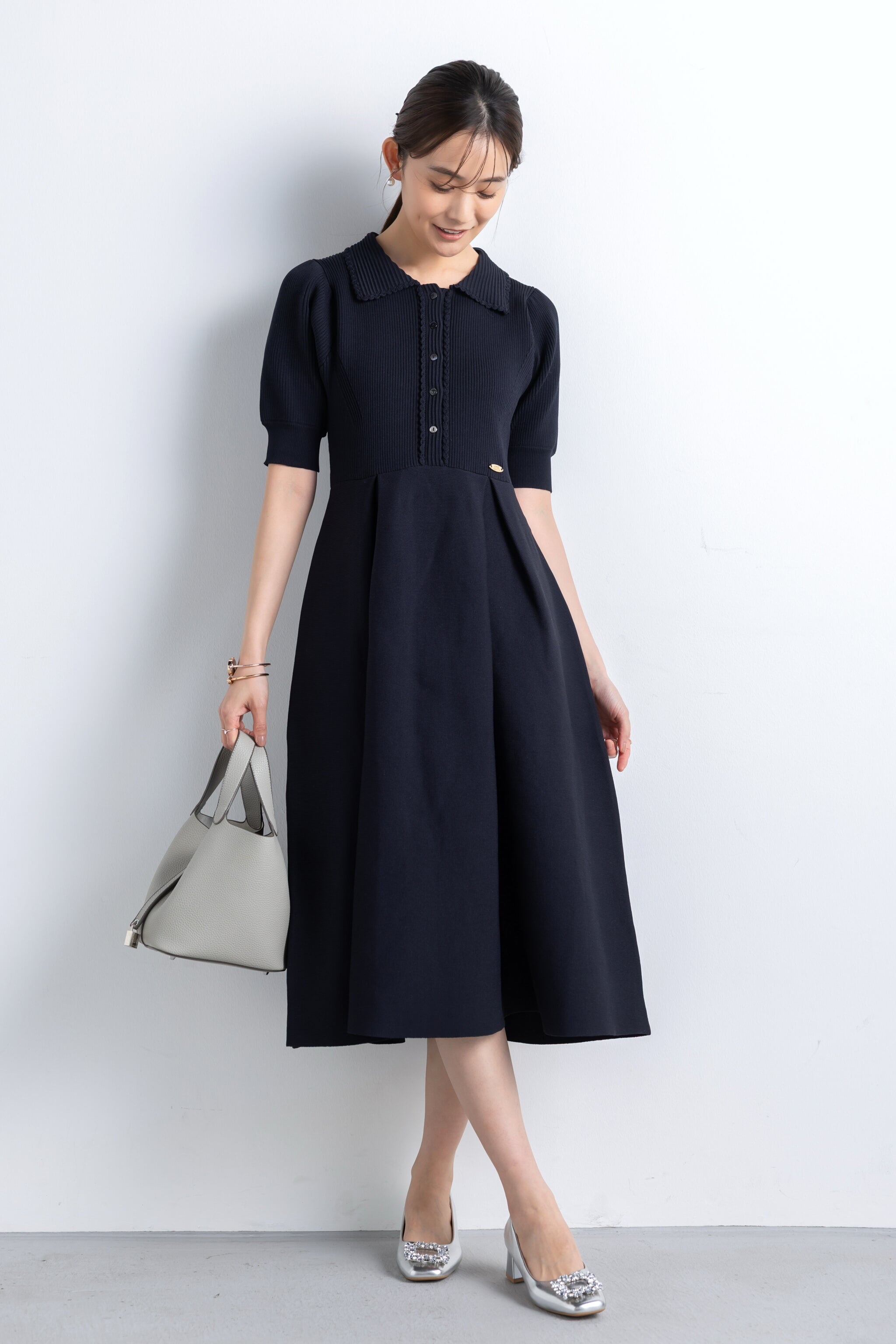 一見シンプルに見えながら、実はこだわりのディテールが詰まったニットワンピース。