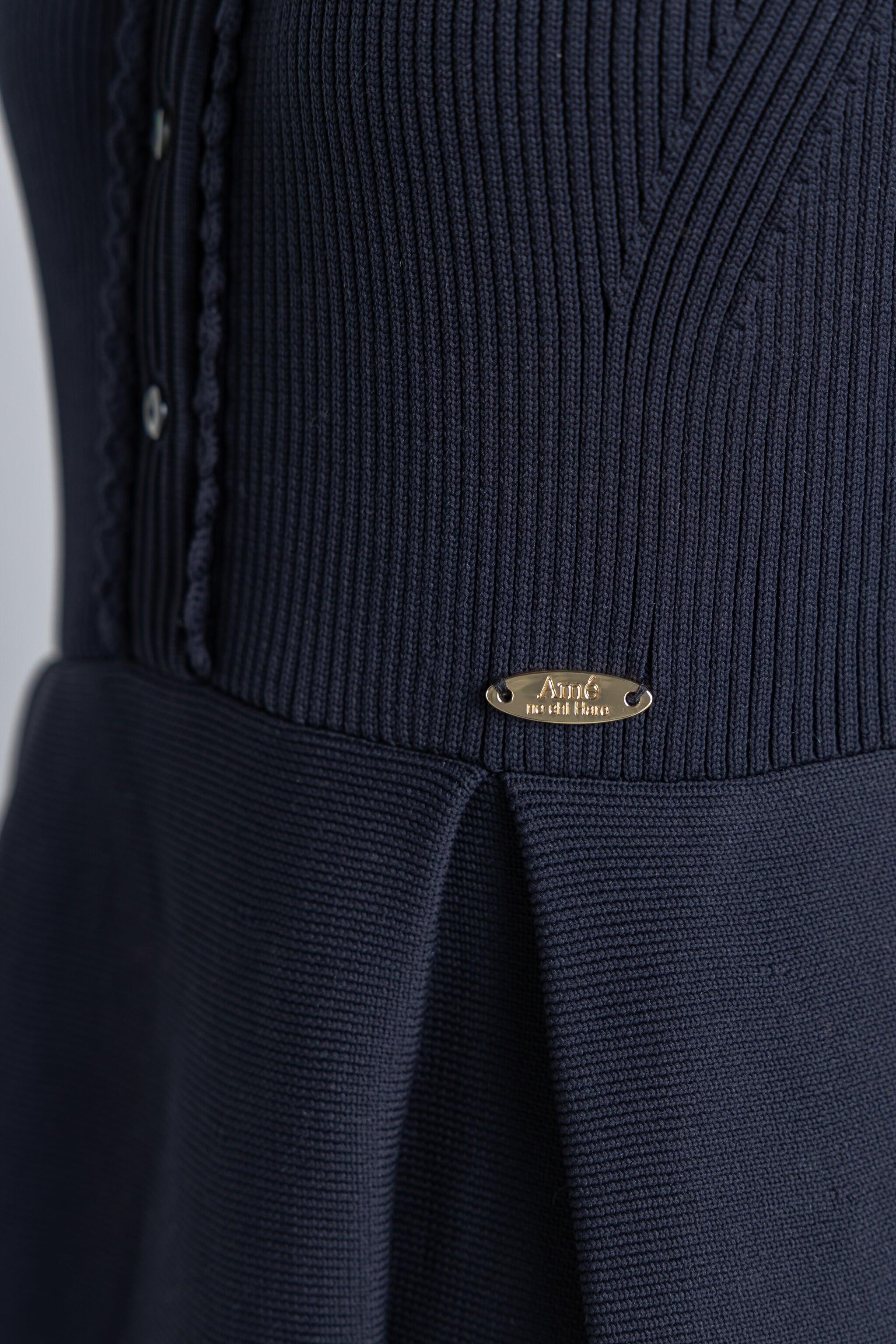 上身頃はすっきりと身体に馴染むリブ編み、スカート部分は総針編みでしっかりとフォルムを形成しました。