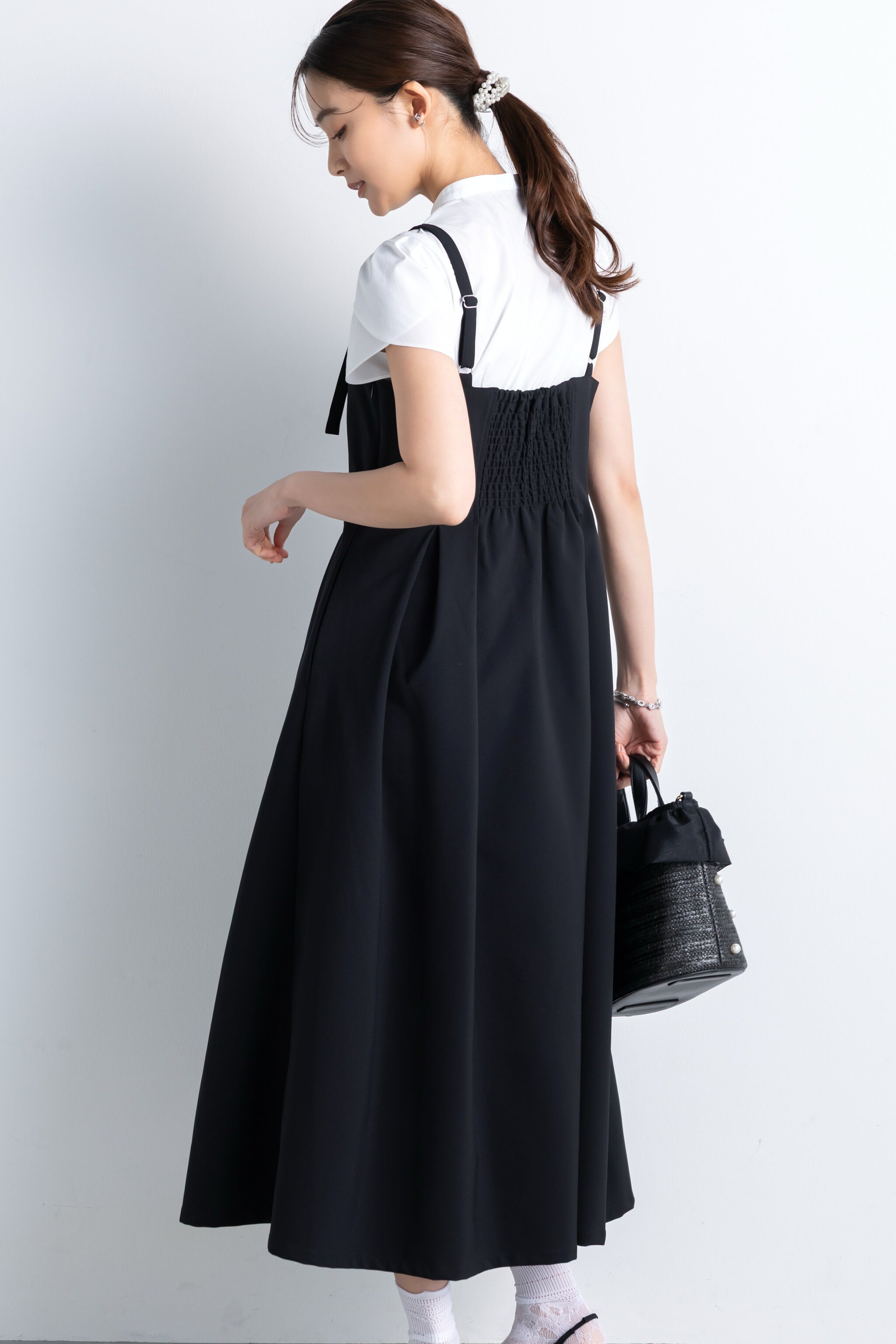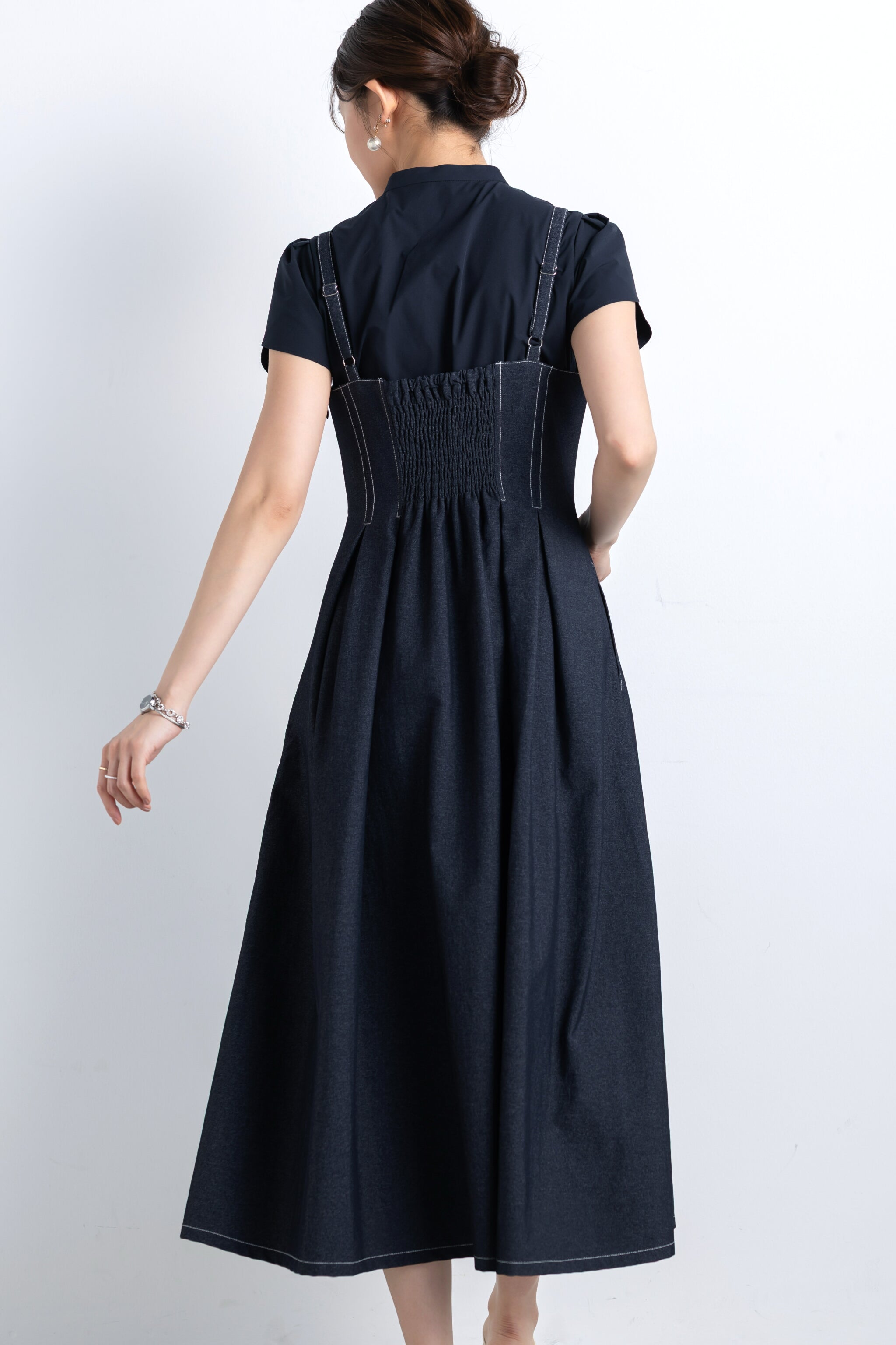 背中にはゴムシャーリングを入れ、ボディに優しく沿う仕様。