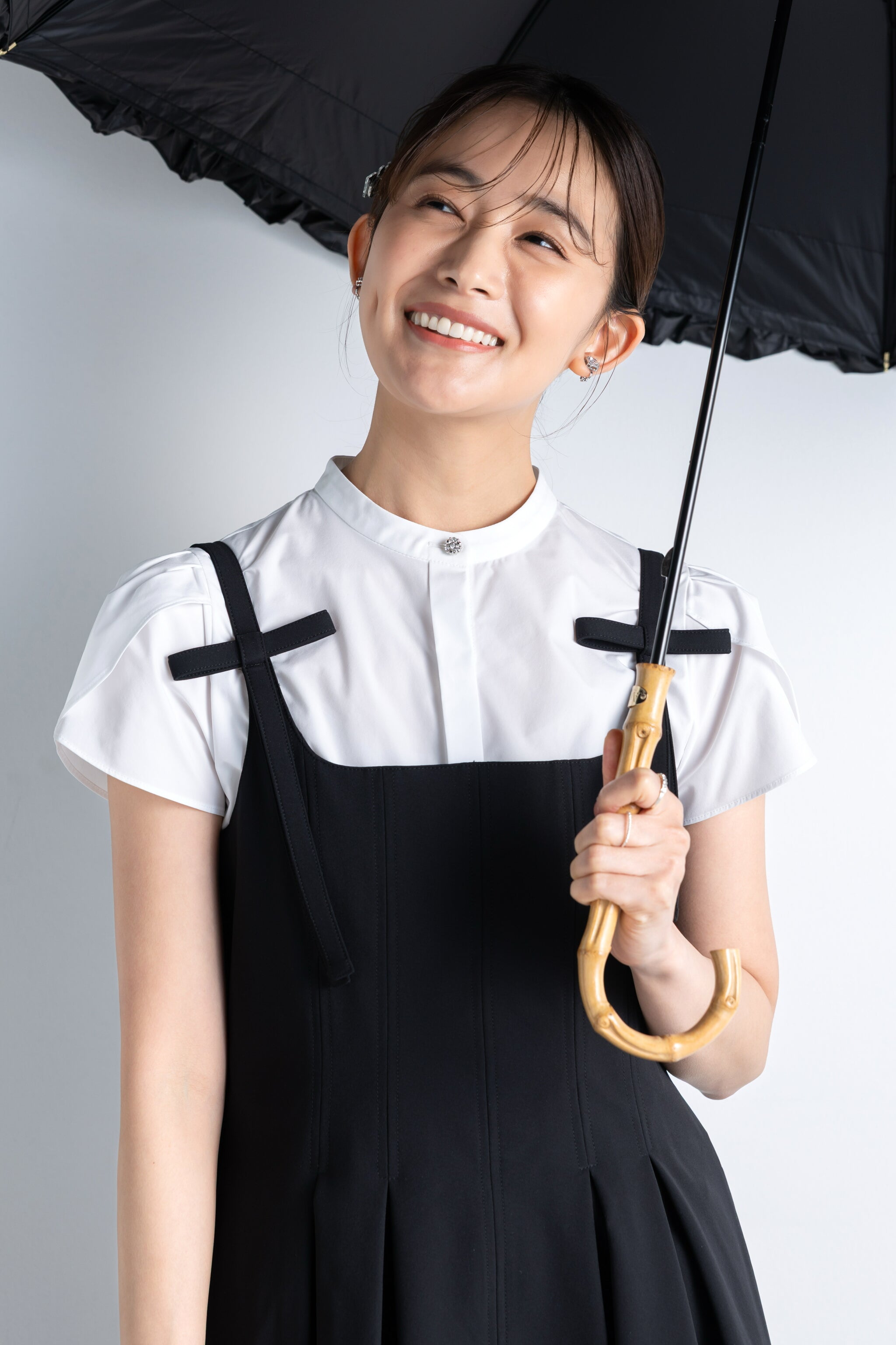 ブラックはなめらかで、お出かけスタイルにも馴染む無地。
