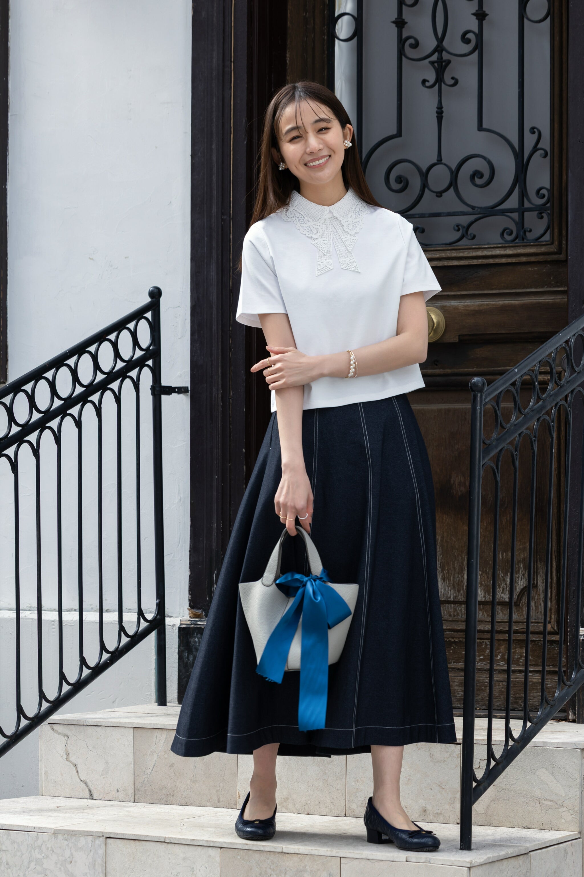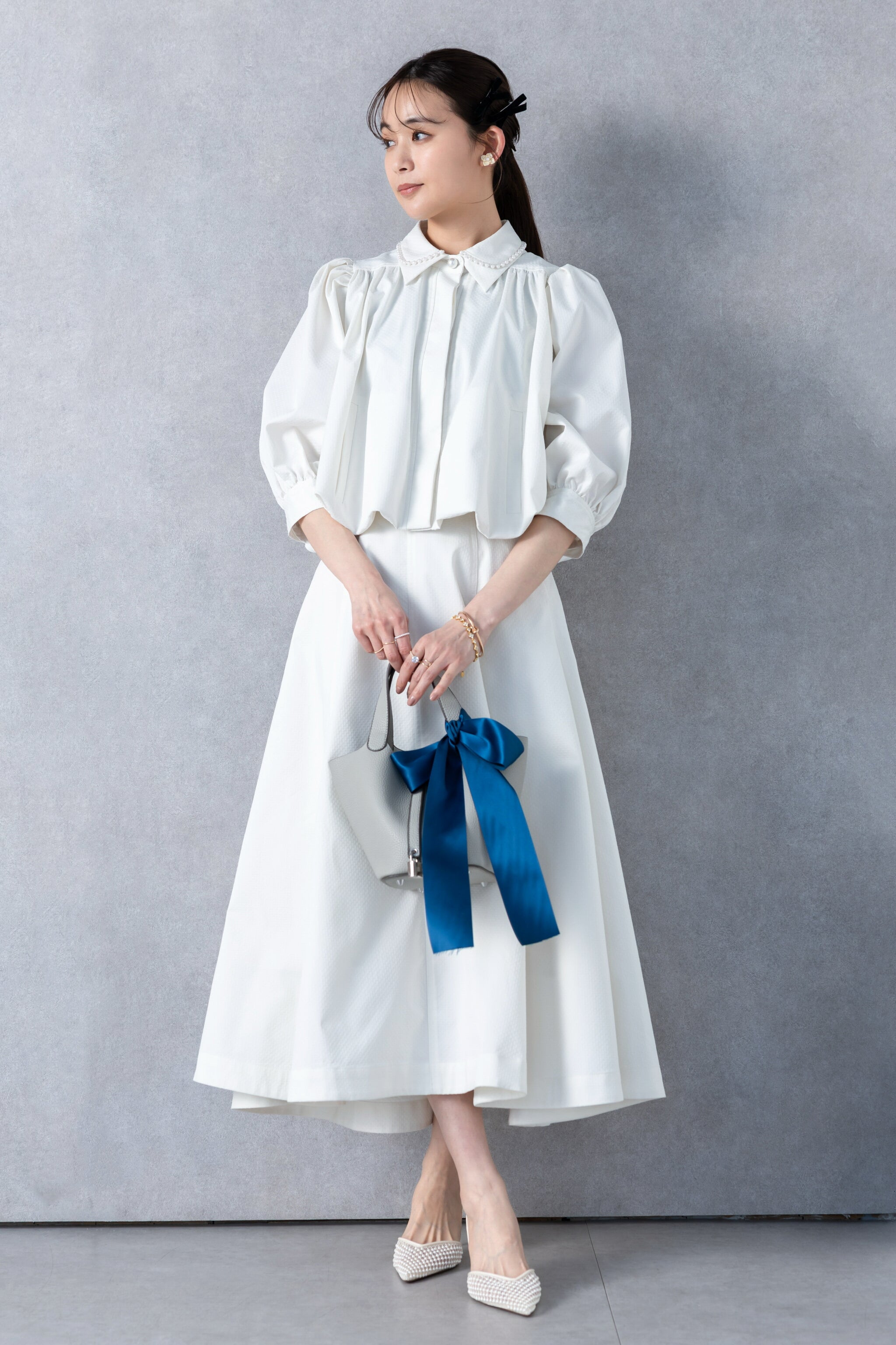 腰周りは華奢見えするコンパクトなサイズ感で、女性らしい印象に仕上げました。