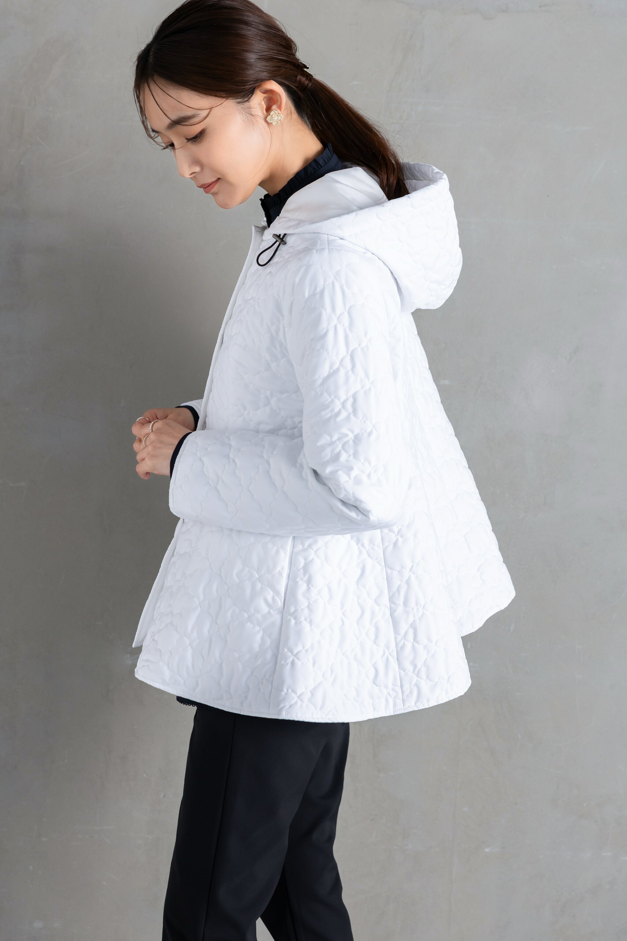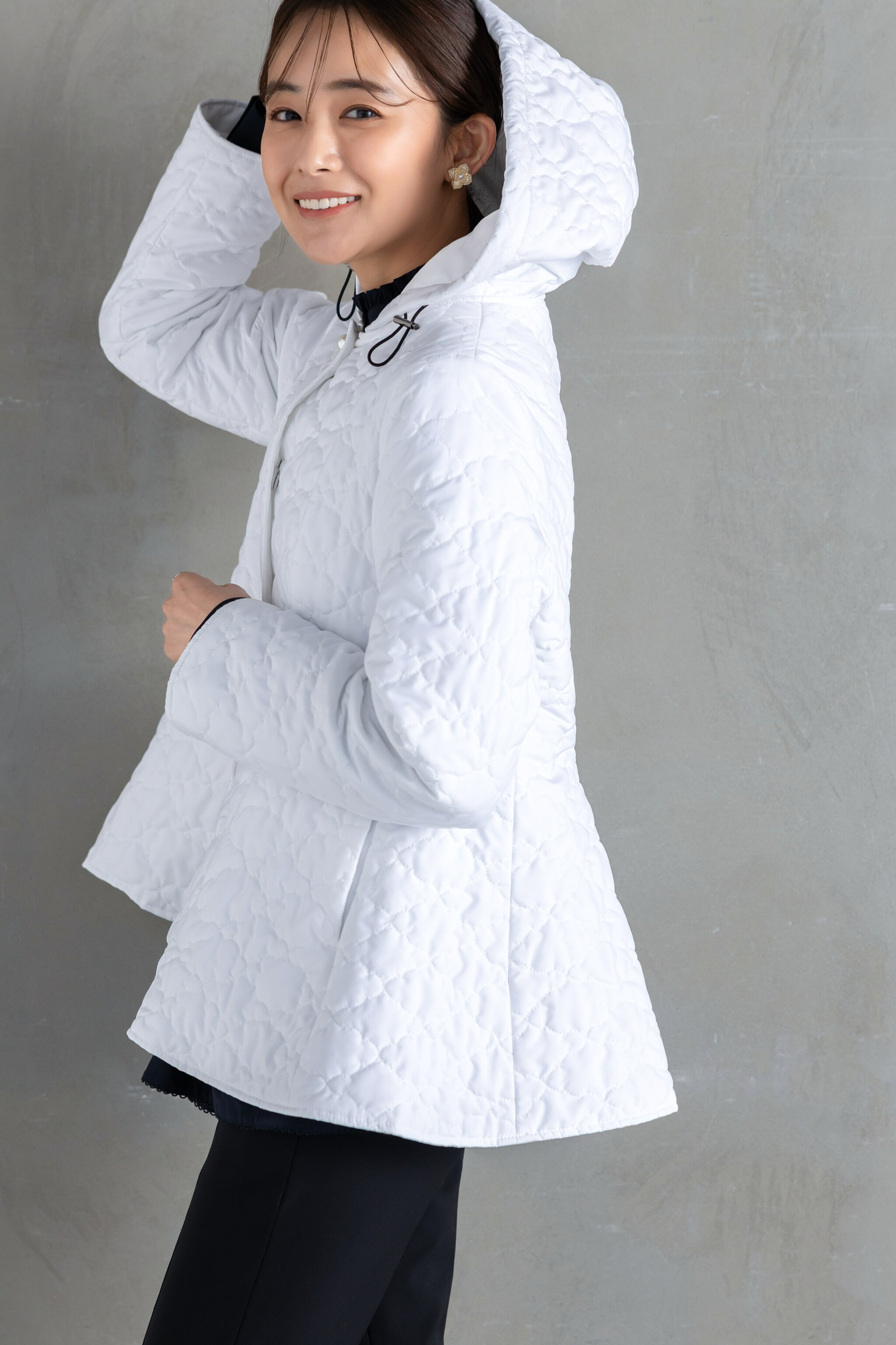 そんなマインドにぴったりの潔いホワイトコートは、軽く暖かで、まるでふわふわの雲のよう。