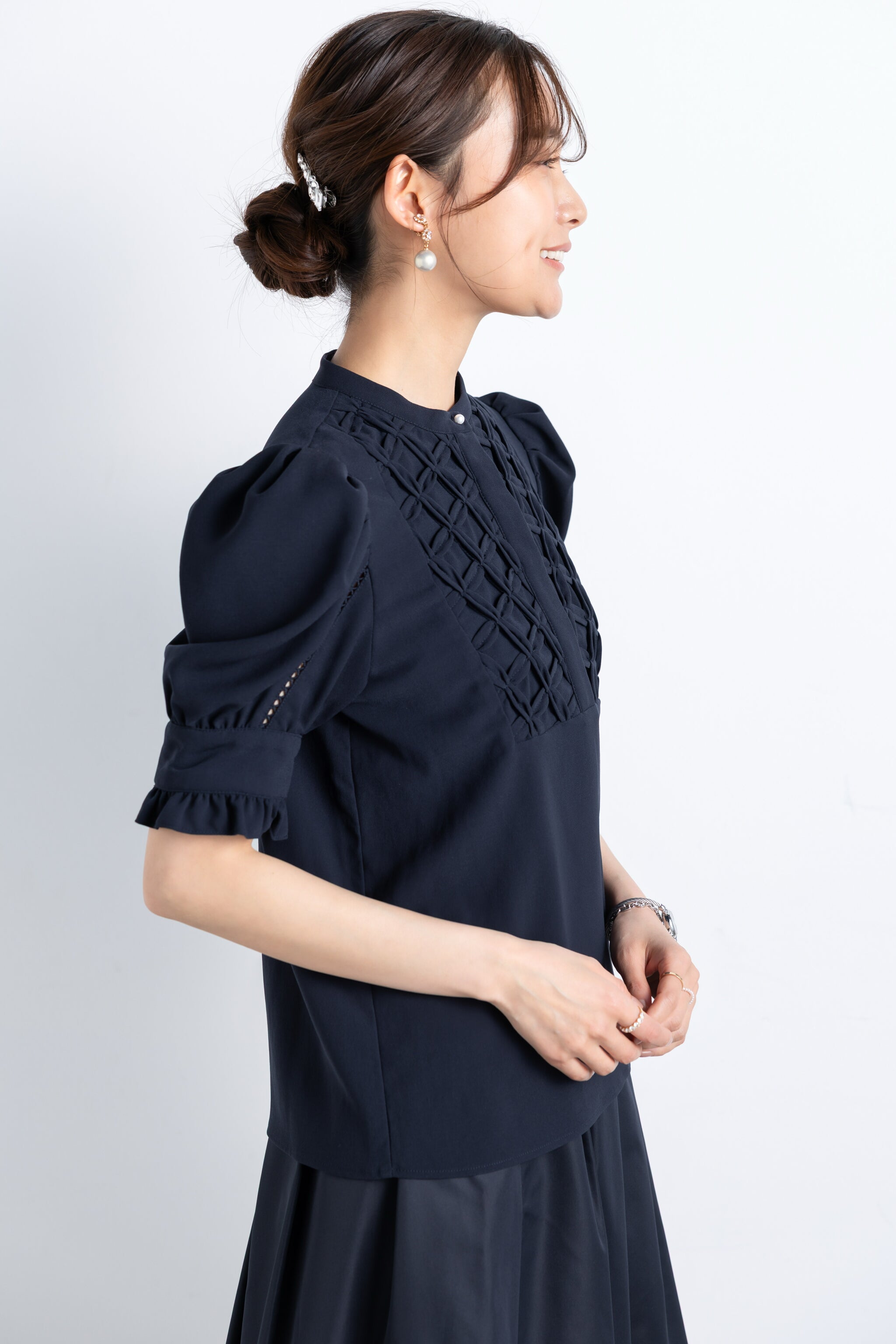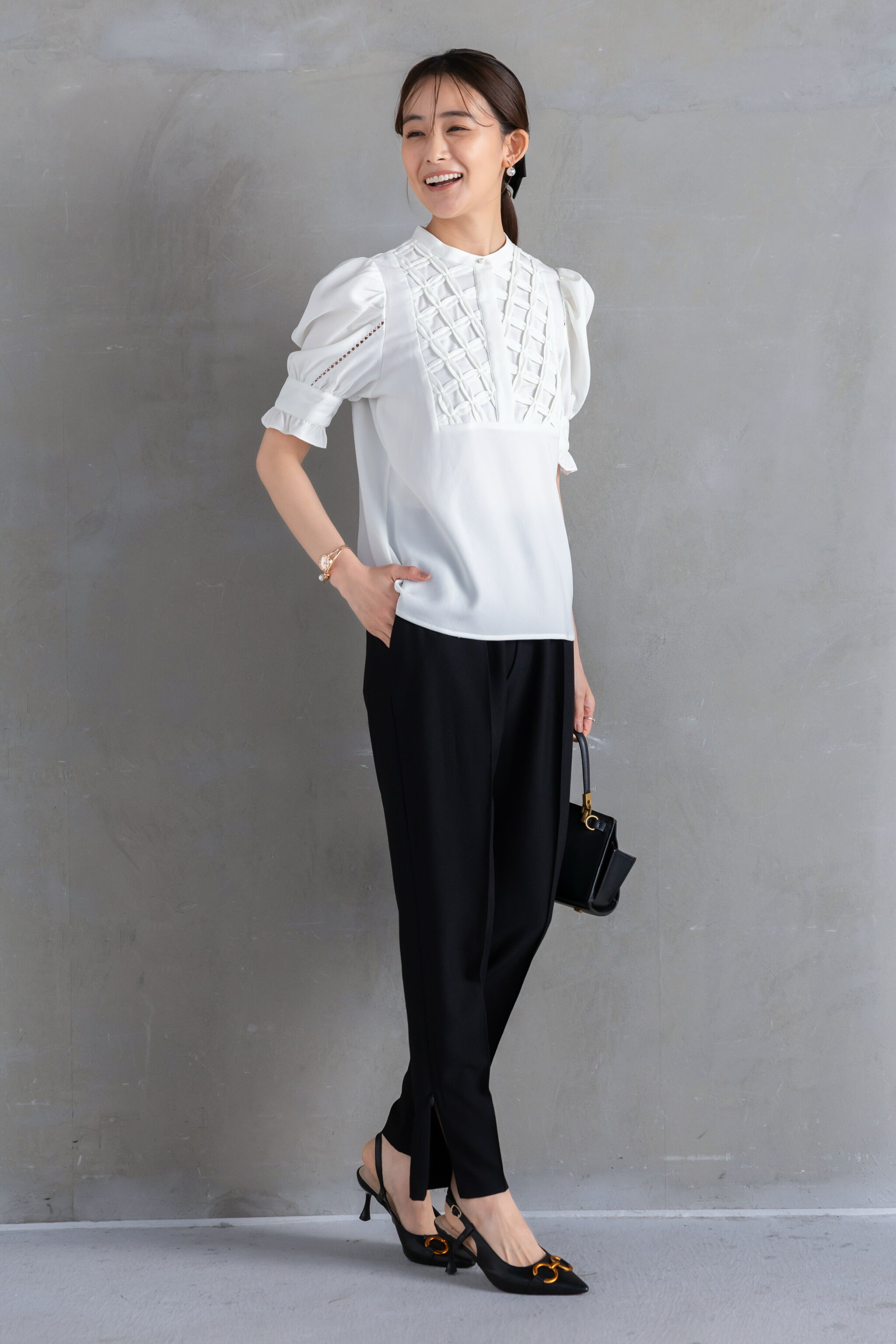 シンプルなボトムに合わせるだけで周りと差がつく優秀ブラウスです。