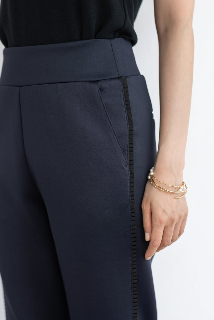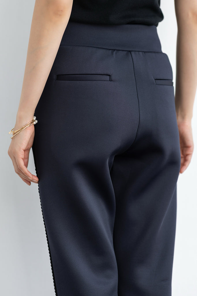 通勤にも馴染むほどのきれいめな見た目ながら、公園や自転車での送り迎え、旅行など、アクティブなシーンにも活躍するコンフォートなパンツ。