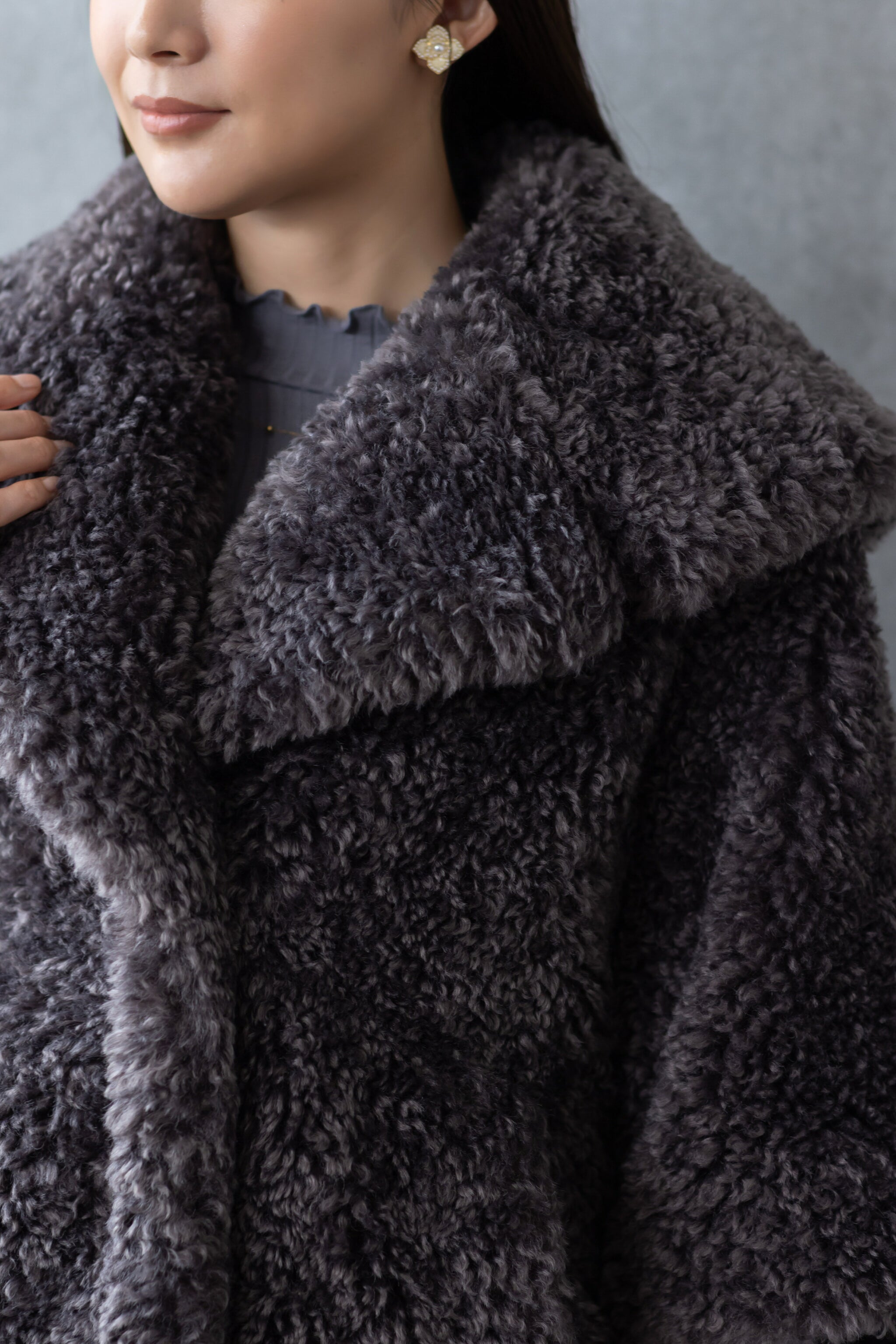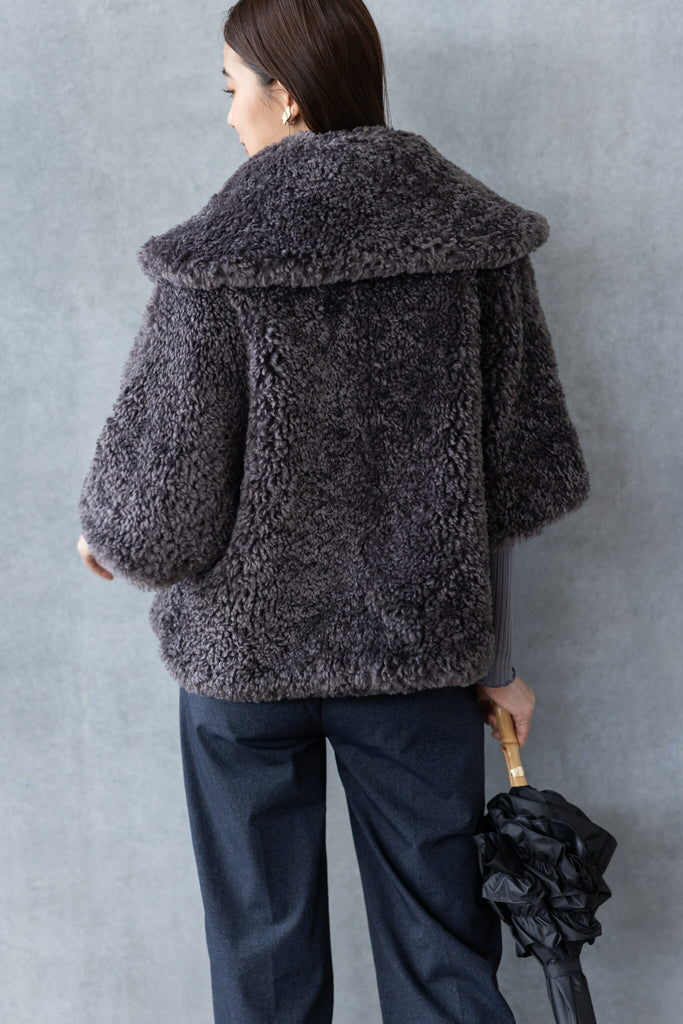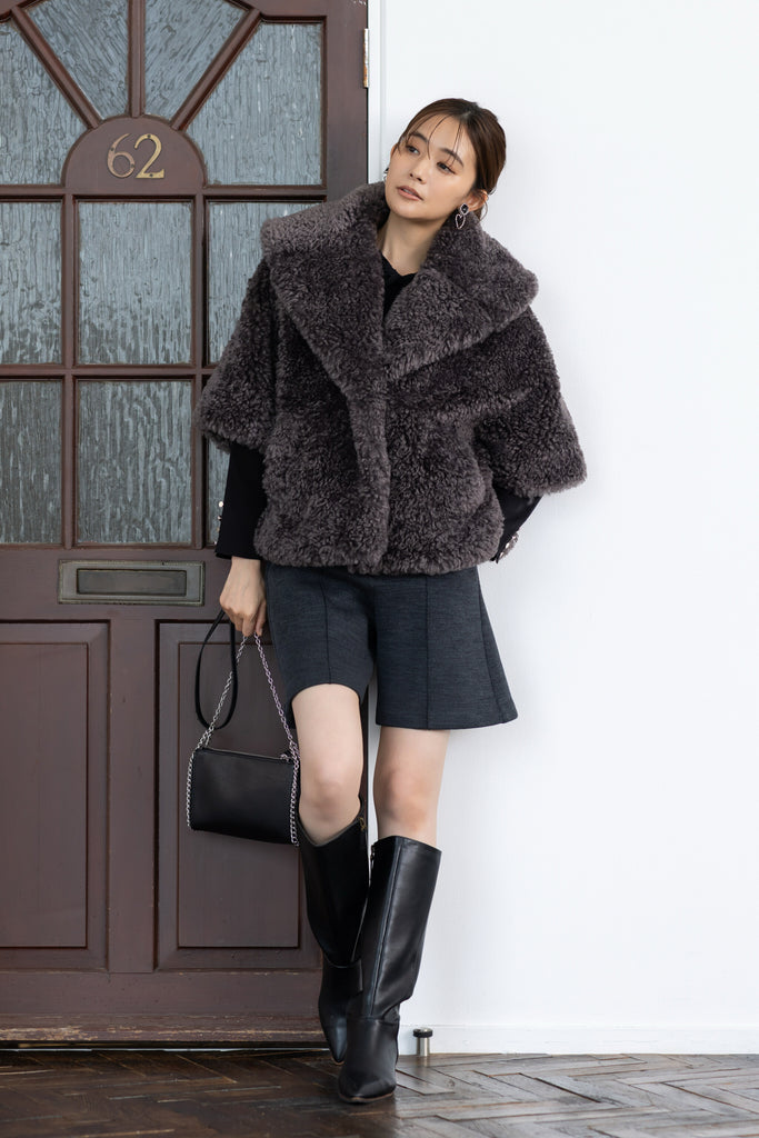 プードルのようなキュートさでコーディネートを盛り上げてくれるショートジャケット。