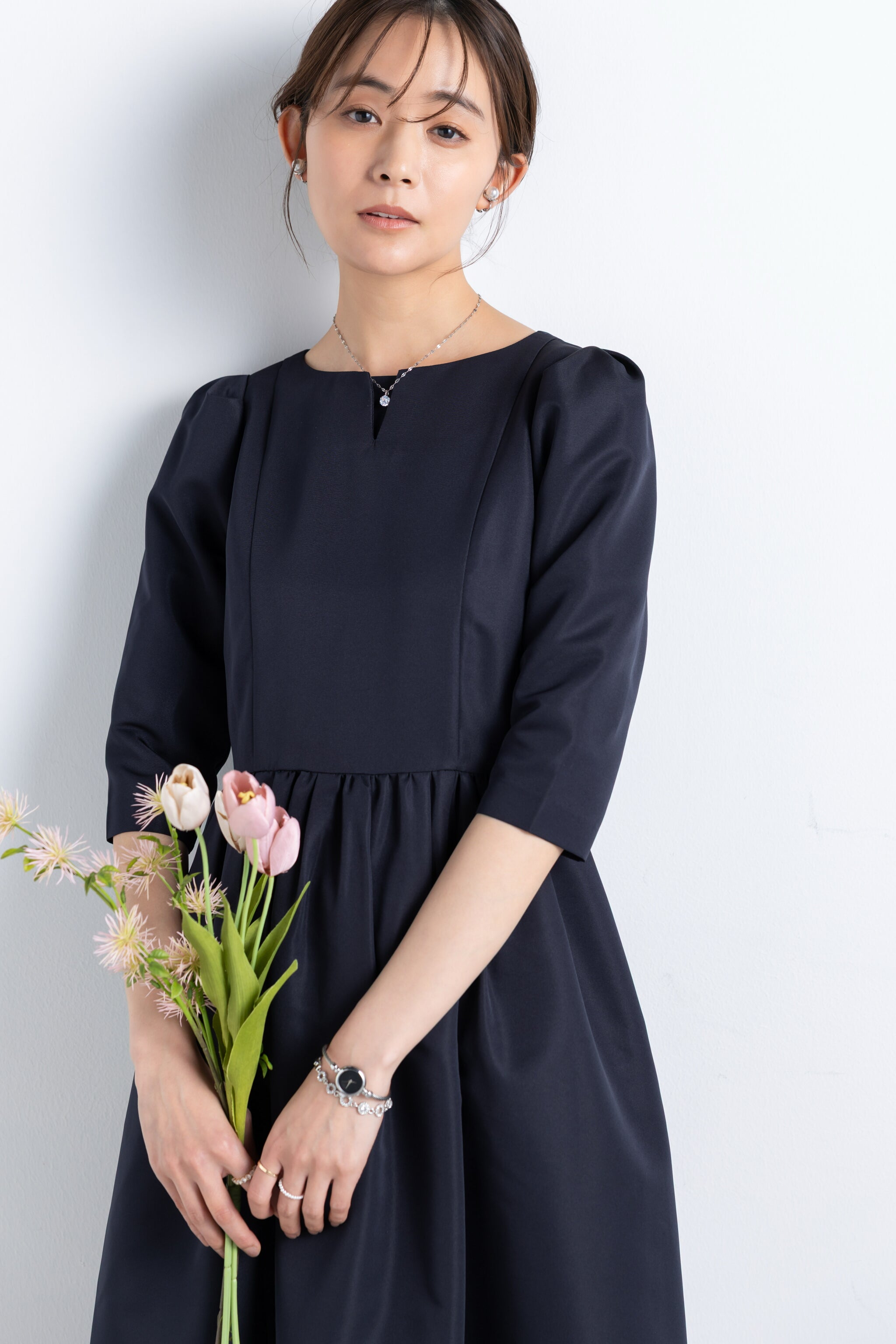 【Coming soon】雨でもハレの日ギャザーフレアミディドレス(Mina)