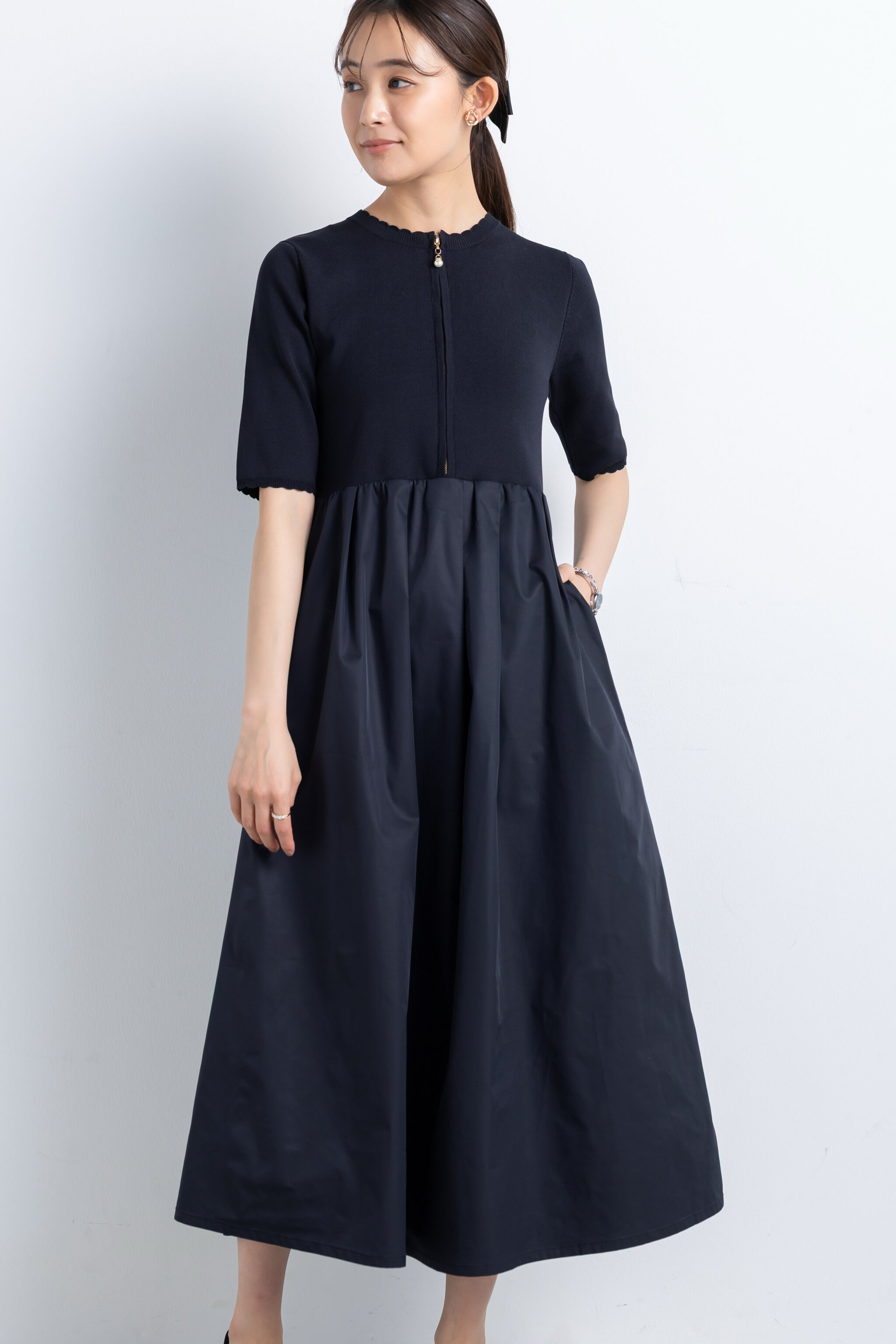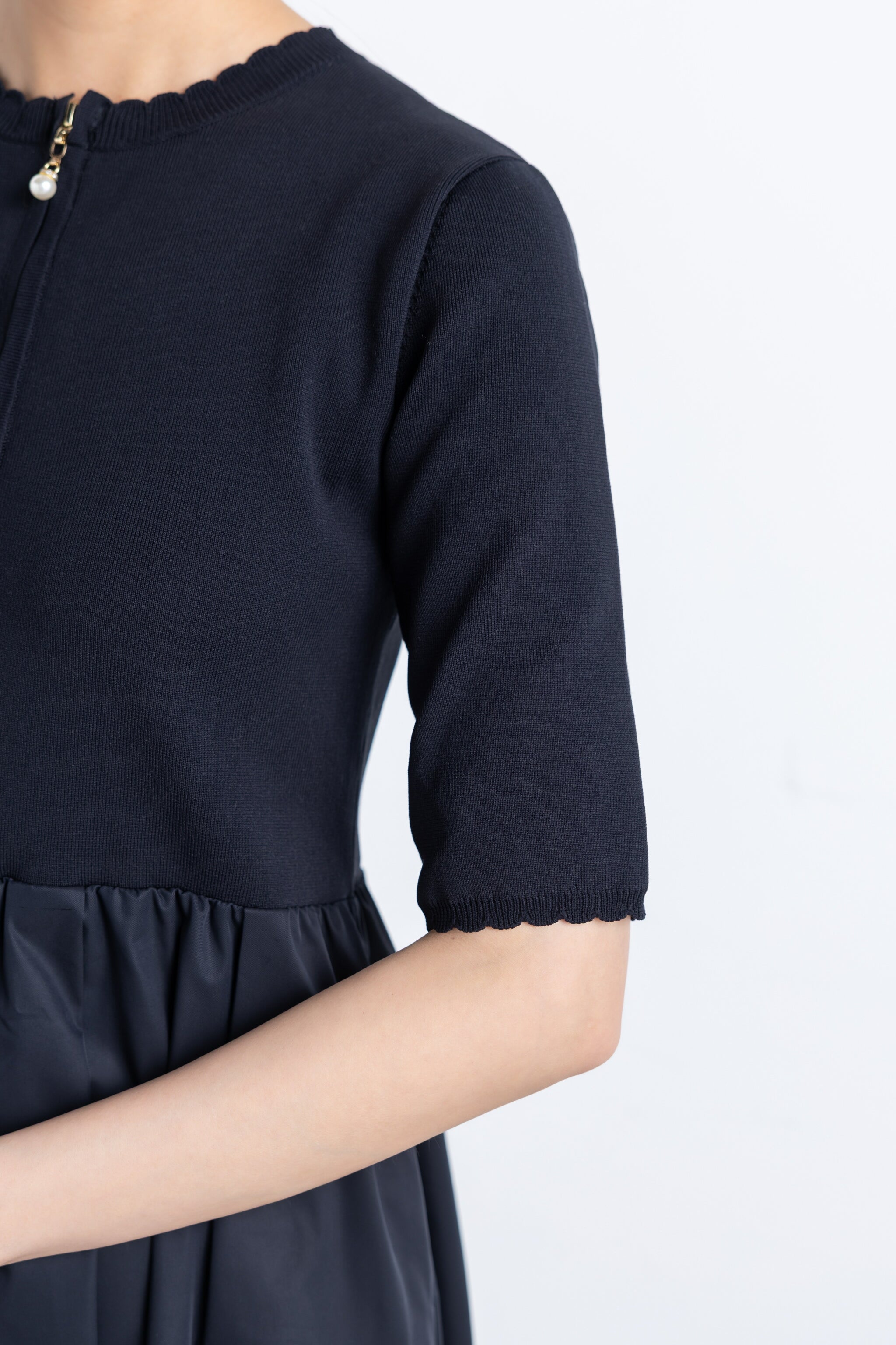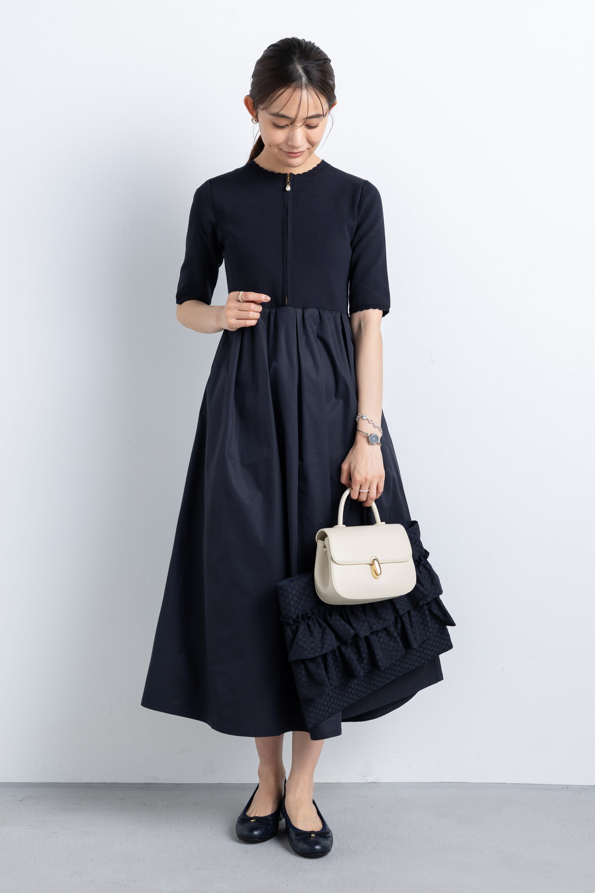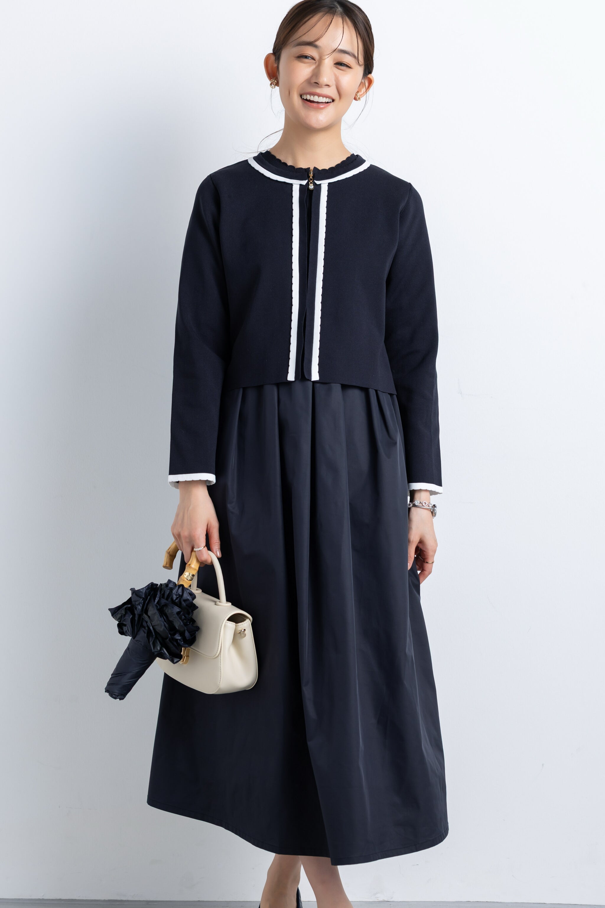 お揃いのスカラップをあしらったスカラップニットカーディガンとアンサンブルで着用するのも素敵です。