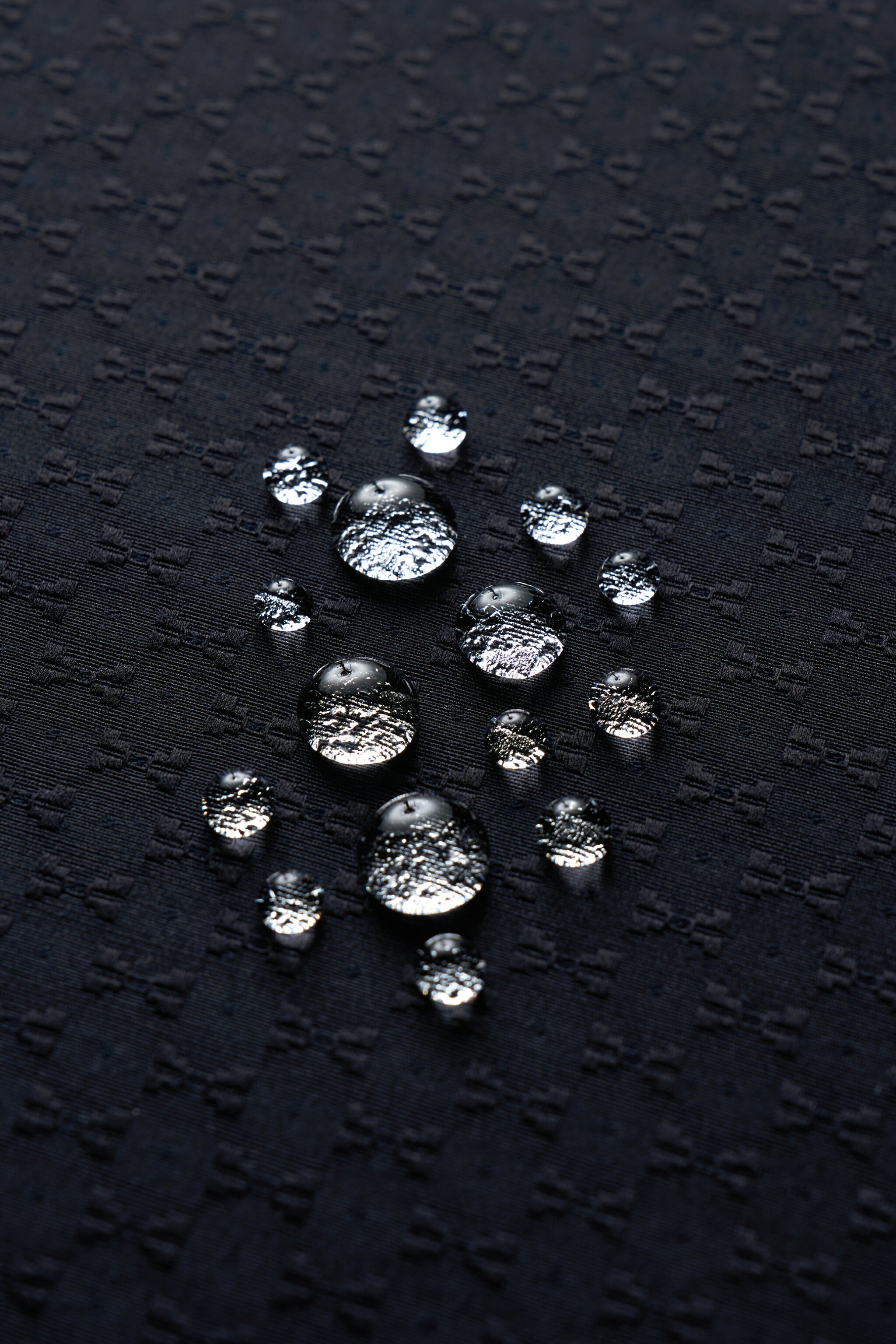 表地はシワになりにくく、雨にも強い撥水ジャカード素材。